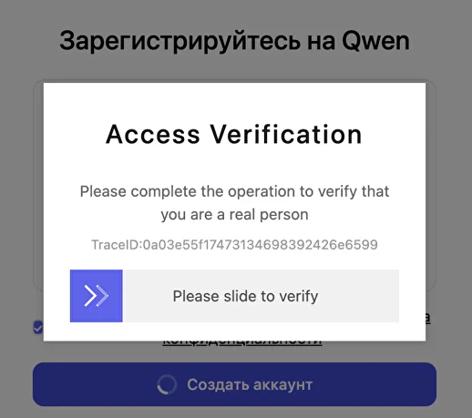 Не получается зарегистрироваться в QWEN?